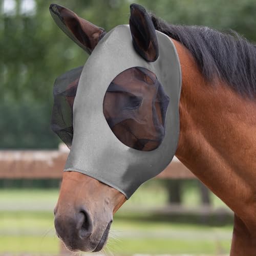 Unsere Fliegenmaske schützt Gesicht, Augen und Ohren Ihres Pferdes vor Insektenstichen und UV-Strahlen. Sie ist ideal für heiße Sommermonate, in denen die Sonneneinstrahlung stark ist.