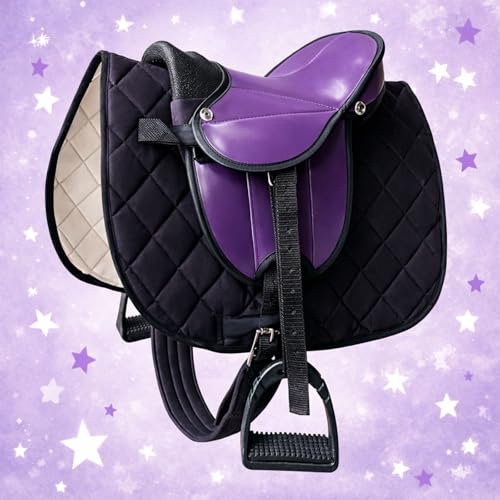 Brama West Holzpferd Sattel Set „My Happy Pony“ | Sattel für Shetty Pony Holzpferd | mit Satteldecke, Sattelgurt, Steigbügel & Steigbügelriemen – Lila