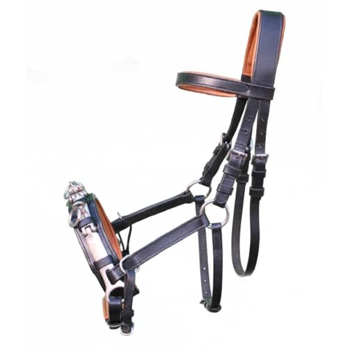 Der Pferde KAPPZAUM aus unserem eigenen Hause BRAMA-WEST besteht aus hochwertig verarbeitetem schwarzem Leder und ist im Nasen-und Nackenbereich mit hellbraunem Leder unterlegt.