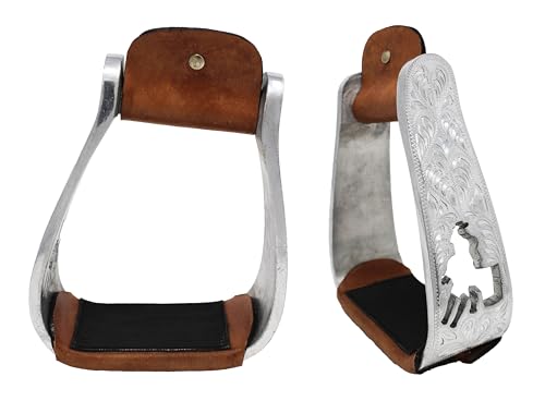 Unser Produkt, der CHALLENGER Horse Western Turquoise Aluminium Gravierte Barrel Racer abgewinkelte Steigbügel 51151SL, ist eine hochwertige und robuste Option für alle Reiter. Mit seiner einzigartigen Design und den herausragenden Merkmalen bietet dieser Steigbügel nicht nur Sicherheit, sondern auch Komfort und Effektivität im Sattel.