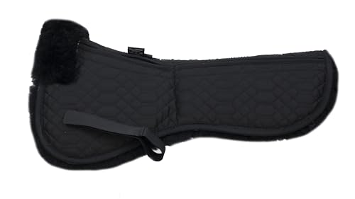 Engel Reitsport | SAKIS1AP-L-SCH-SCH | Sattelkissen aus echtem Merino Lammfell | Korrektur Aufpolsterbar | mit Fellrand vorne | L | Stoff schwarz Fell schwarz