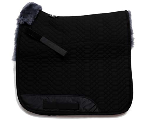 Engel Reitsport | SCHABRA1-D-SCH-ANT | Schabracke | Steppstoff | Lammfell im Sattelbereich | Half Lined | Fellkranz vorne | Dressur | Stoff schwarz Fell anthrazit