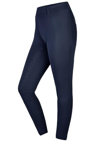 Equinate Damen Reitleggings Myla – Bequeme Reithose mit Vollbesatz Grip Handytasche und Gürtelschlaufen – atmungsaktiv elastisch rutschfest 36 Navy
