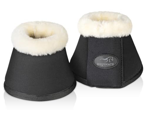 Equinate Hufglocken Furlyn mit synthetischem Lammfell XL Schwarz – Robuste und stoßdämpfende Neopren Springglocken – Hufschutz für Training und Turniere – 2er Set
