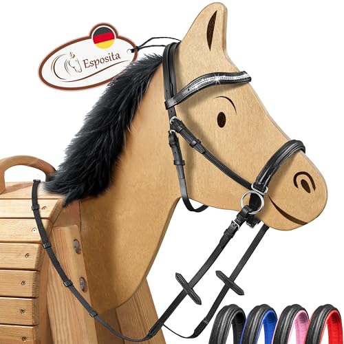 Die Esposita gebisslose Trense für Holzpferde ist ein hochwertiges Produkt, das perfekt zu unseren Shetty Sattel Sets passt. Sie besteht aus hervorragender Verarbeitung und bester Qualität, um sicherzustellen, dass Ihr Pferd sich wohl fühlt.