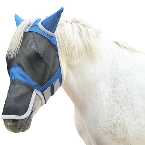 Gallopoff Fliegenmaske Pferd mit Nasen- & Ohrenschutz, UV-Schutz, Atmungsaktives Mesh, Reißfest, Weich Gepolstert, Verstellbar mit Klettverschluss Blau Full