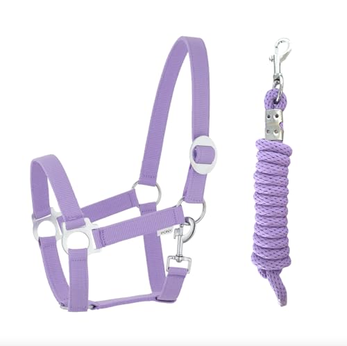 Aufgrund des Verstellbarkeit der Schnalle kann das Set für alle Pferdegrößen verwendet werden. Außerdem enthält das Set ein passendes, gewebtes Führseil aus weichem, hochwertigem Material und einem Karabinerhaken. Das Führseil ist ca. 2 Meter lang.