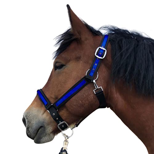 Halfter für Pferde Kaltblut | Halfter xxfull, Stallhalfter| Halfter verstellbar 2 Fach an Kinnriemen & Genickstück (Schwarz-Royalblau, XXFull (Kaltblut))