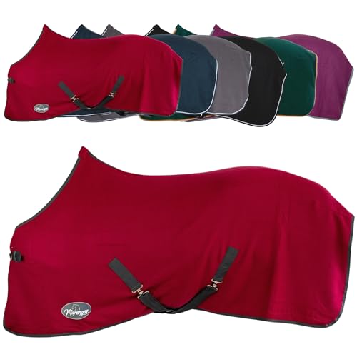 Marengos – Abschwitzdecke Economic mit Kreuzgurten (abnehmbar) | Pferdedecke mit Frontschnalle, Schweifkordel & Widerristpolster | atmungsaktive Fleecedecke | Pferde Zubehör in Granatapfel | 165cm