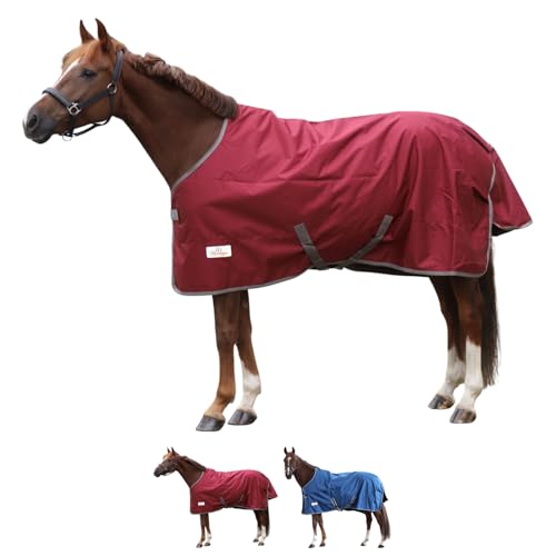 Marengos by Bucas – Weidedecke Freedom Turnout 600D – Regendecke & Übergangsdecke – wasserdichte Pferdedecke mit Innenfutter & Kreuzbegurtung – Weinrot/Dunkelblau – 145cm (ohne Füllung)