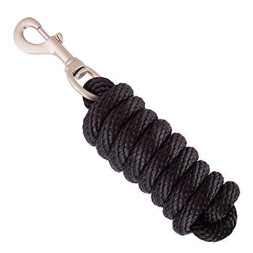 Merauno® Führstrick für Pferd – Anbindestrick in verschiedenen stylischen Designs, Führleine, Anbindeseil Pony, Esel, Ziege lang Strick mit Karabinerhaken(Schwarz, Karabinerhaken)