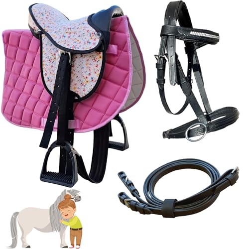 Kinder Shettysattel-Set mit Trense und Zügel