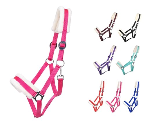 Das Halfter besteht aus Polypropylen und ist leicht zu reinigen. Der Kopfstück und der Nasenriemen sind mit weichem Wollimitat gefüllt, um das Pferd zu schützen.