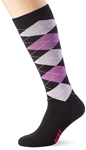 Pfiff 100322 Unisex-Reitstrumpf, kariert Socke- Gr. 40, schwarz-lila-flieder