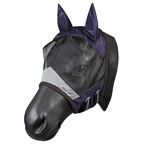 PFIFF 102943 Fliegenmaske mit UV Schutz, Pferde Fliegenschutz, Cob, Dunkelblau