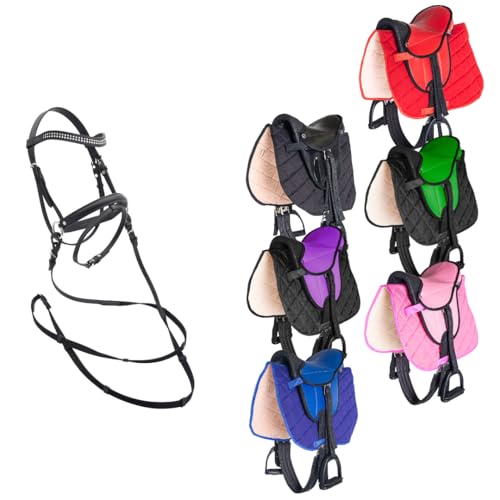 Das Set besteht aus einem hochwertigen Sattel, einer Trense und einem Reitset, das perfekt für Kinder geeignet ist. Die Materialien sind robust und widerstandsfähig, sodass das Set auch bei intensivem Gebrauch seine Optik behält.