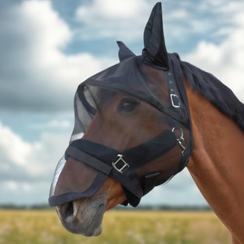 Erleben Sie die Freiheit und Entspannung, die eine Fliegenmaske bietet. Diese Maske ist ideal für sonnige Tage auf der Weide oder Paddock.