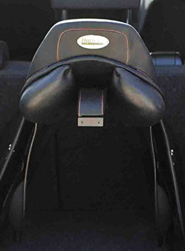 Der Sattelhalter besteht aus Aluminium mit einem Lederpolster in schwarz. Er bietet eine sichere Befestigung an den Kopfstützen des Autos. Durch seine Flexibilität kann er auch bei verschiedenen Sätteln verwendet werden.