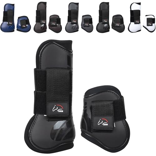 Unser Produkt bietet einen umfassenden Schutz für die empfindlichen Vorder- und Hinterbeine Ihres Pferdes. Die Gamaschen und Streichkappen sind aus 100 % Polyester gefertigt und verfügen über weiche, anatomisch geformte Kunststoffschalen, die sich perfekt an die Beine des Pferdes passen.