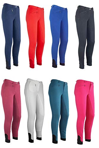 Die Hose ist aus einem atmungsaktiven und elastischen Gewebe gefertigt, das sich an das Bein des Kindes anpasst und so optimalen Komfort beim Reiten bietet. Der elastische Beinabschluss sorgt dafür, dass die Hose nicht zu eng wird und so auch bei schnellen Bewegungen keine Einschränkung darstellt.