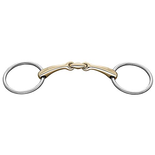 Durch die doppelt gebrochene Form und den 45-Grad-nach-vorne-geneigten Mittelstück passt die Trense anatomisch korrekt zwischen Zunge und Gaumenbogen und nutzt gleichzeitig den sensiblen Tastsinn der Zunge.