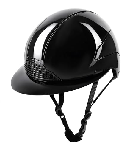 Das Material des Helms ist sehr leicht und atmungsaktiv, was es zu einem idealen Begleiter bei langen Reitstunden macht. Die 3-Punkt-Anpassung ermöglicht eine sorgenfreie Anpassung an den Kopf, während die integrierten Ventilationsöffnungen für optimale Luftzirkulation sorgen.