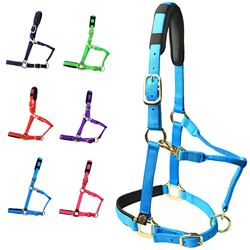 T TEKE verstellbare Pferdehalfter aus strapazierfähigem, weichem Nylon, gepolstert mit scheuerfestem Waffel-Neopren an Krone und Nase