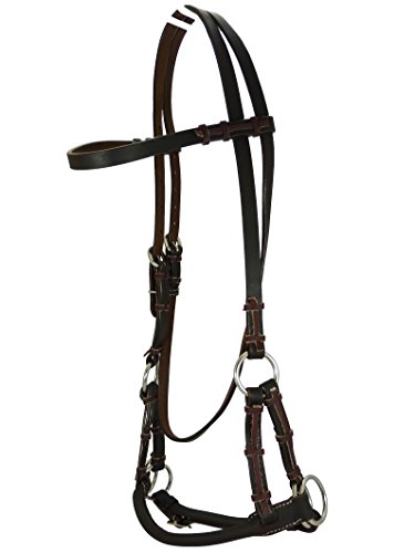 Thor Equine Sidepull gebisslos Leder – Dunkelbraun, rundes Nasenband, verstellbar, Edelstahl