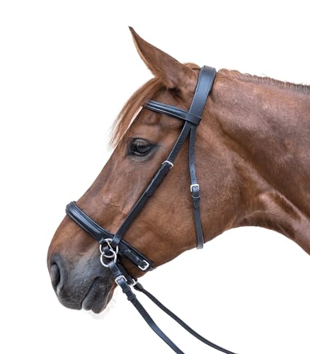 Der gebisslose Zaum mit Wirkung über die Kinnlade ist ideal für gut ausgebildete Pferde, da er sie von einer zu festen oder unangenehmen Bindung befreit. Die Lieferung inklusive Zügel ermöglicht eine einfache und schnelle Anpassung.